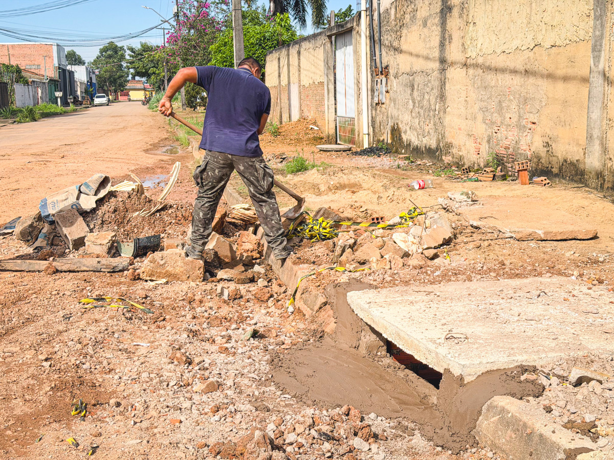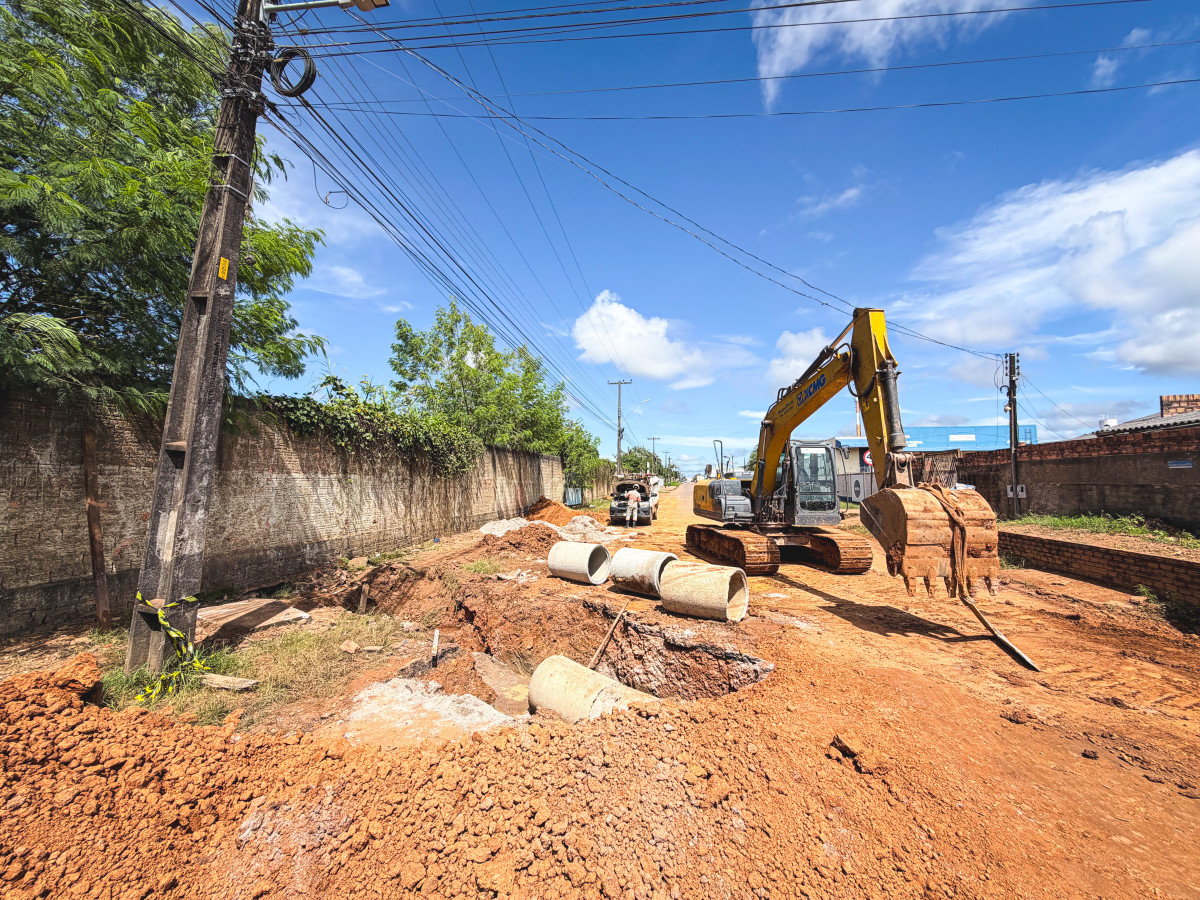 Já na zona Norte, no bairro Industrial, uma obra de maior porte está em andamento. O objetivo é solucionar de forma definitiva um problema histórico de alagação que atinge centenas de famílias da região.